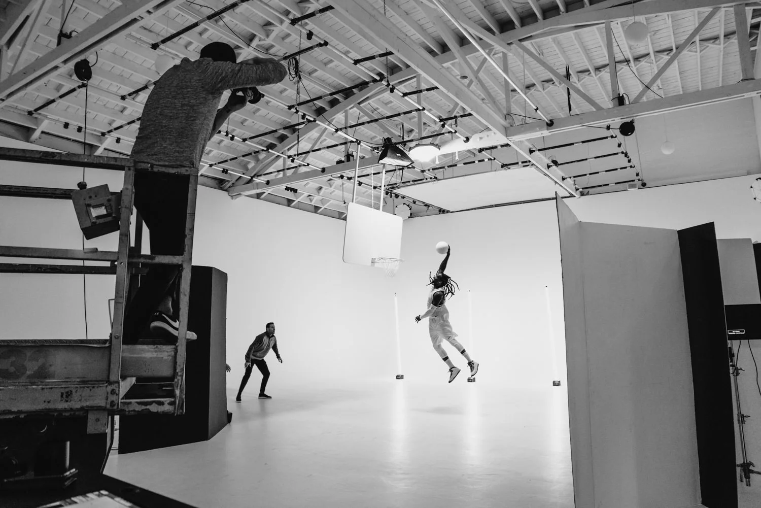 The first half of photographer Cam Ostman's basketball concept of black & white went off without a hitch. We shot all of the photos and videos of the white background portions.